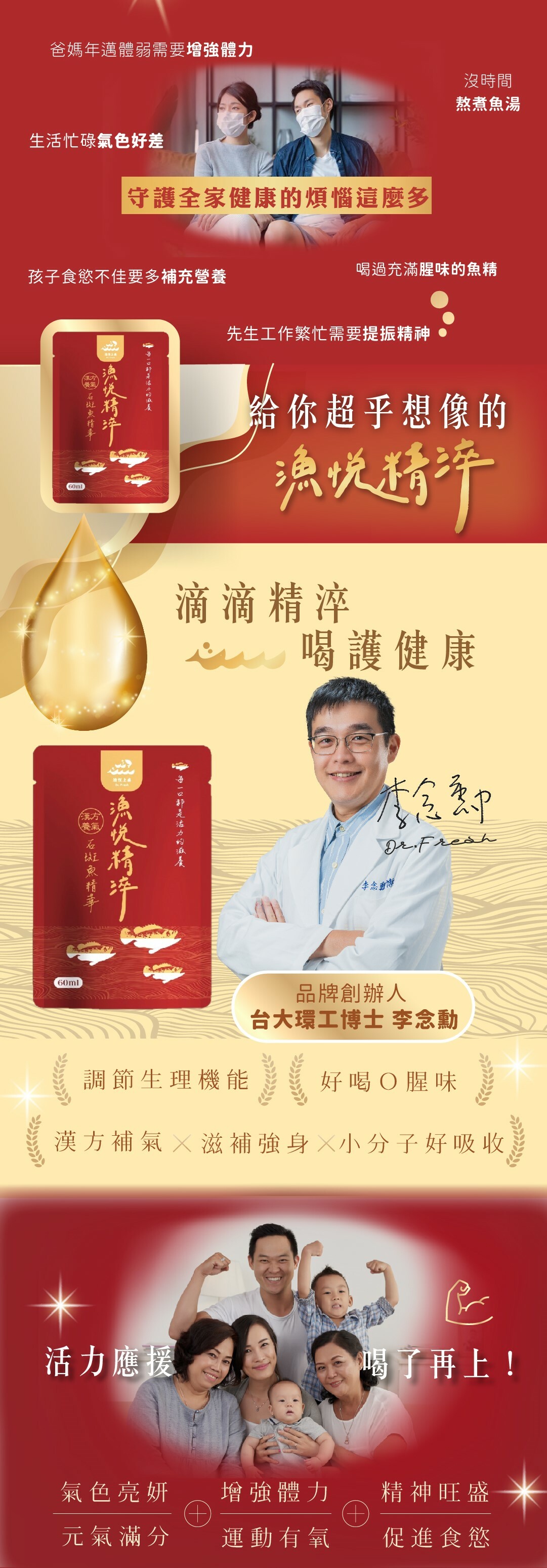 漁悅上桌 Dr. Fresh 漁悅精淬 漢方養氣石斑魚精華 年節送禮 禮盒漁悅上桌 Dr. Fresh 漁悅精淬 漢方養氣石斑魚精華 年節送禮 禮盒